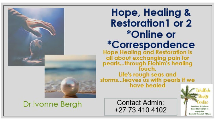 We strive and undertake to guide and teach you to the best of our ability with the inspiration that ABBA FATHER gives us, towards A DEEPER RELATIONSHIP WITH OUR CREATOR FATHER AND WE STRIVE together towards HOPE, HEALING & RESTORATION in the body of Messiah. Matt.11:28